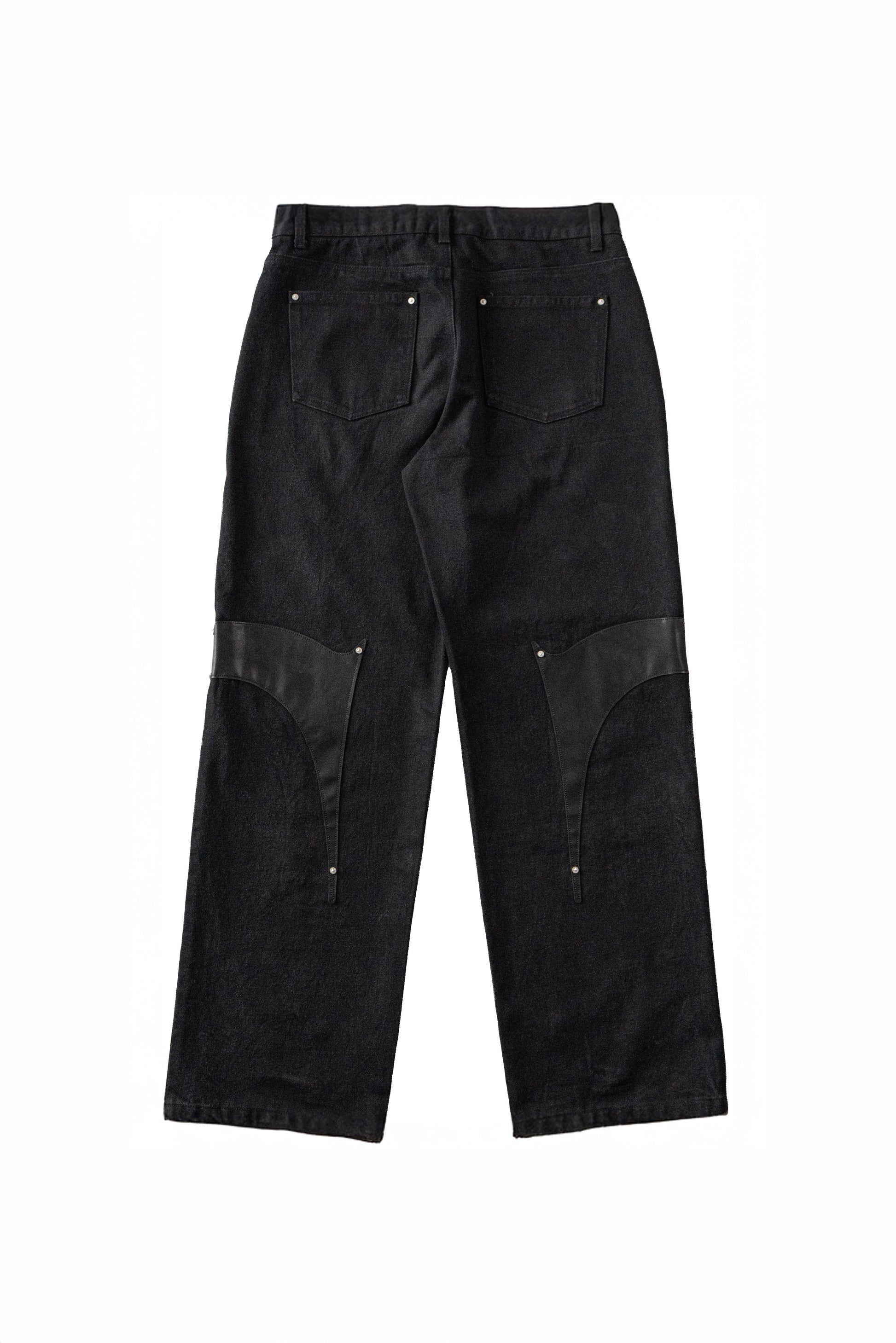 SUNDOWN FAUX LEATHER DENIM TROUSERS